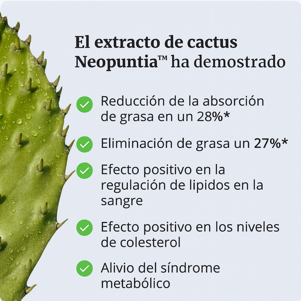 Un extracto de este cactus, Neopuntia™, ha demostrado los siguientes beneficios en varios estudios:
