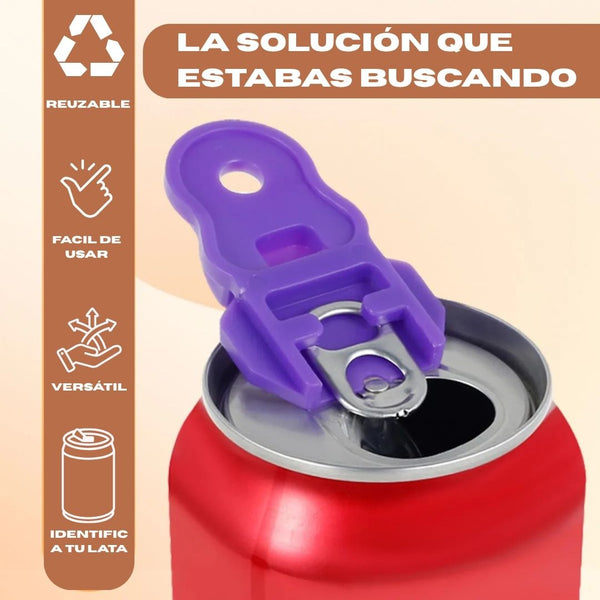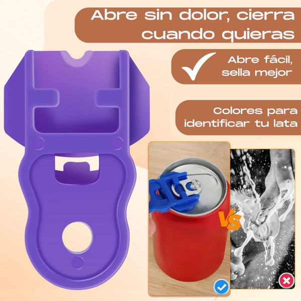 Con el Abrelatas + Sello de Seguridad abres sin dolor y cierras cuando quieras. Mantén tu bebida protegida y con mejor gas. Pack x5 a $79.900, Envío Gratis y Pago en casa. Haz clic en “Comprar ahora”.