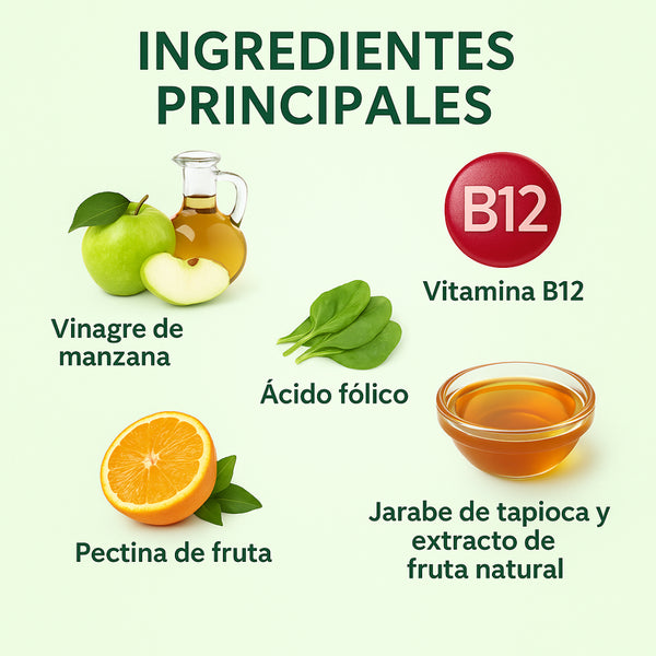 - Ácido fólico: apoya la salud celular y digestiva, favoreciendo el metabolismo.